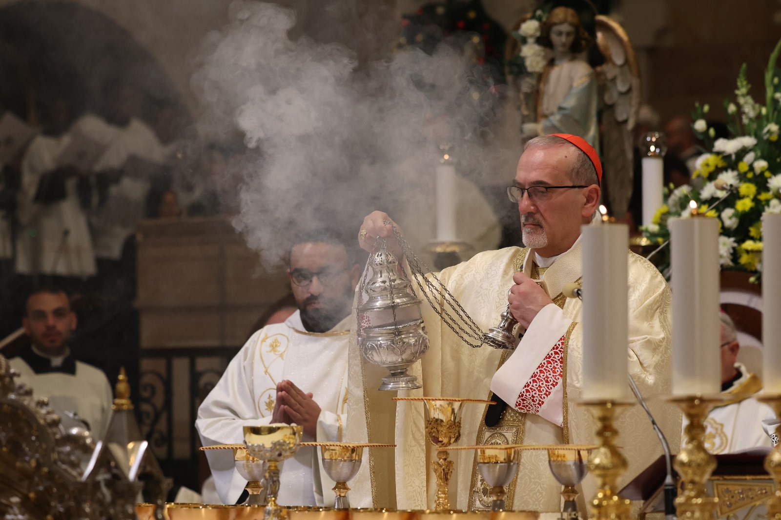 وترأس القداس، بطريرك القدس للاتين الكاردينال بييرباتيستا بيتسابالا، الذي تضرع إلى الله في عظته، توطيد العدل، وأن يعم السلام الجميع.