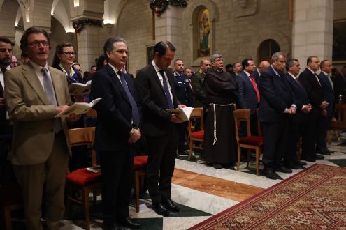وترأس القداس، بطريرك القدس للاتين الكاردينال بييرباتيستا بيتسابالا، الذي تضرع إلى الله في عظته، توطيد العدل، وأن يعم السلام الجميع.