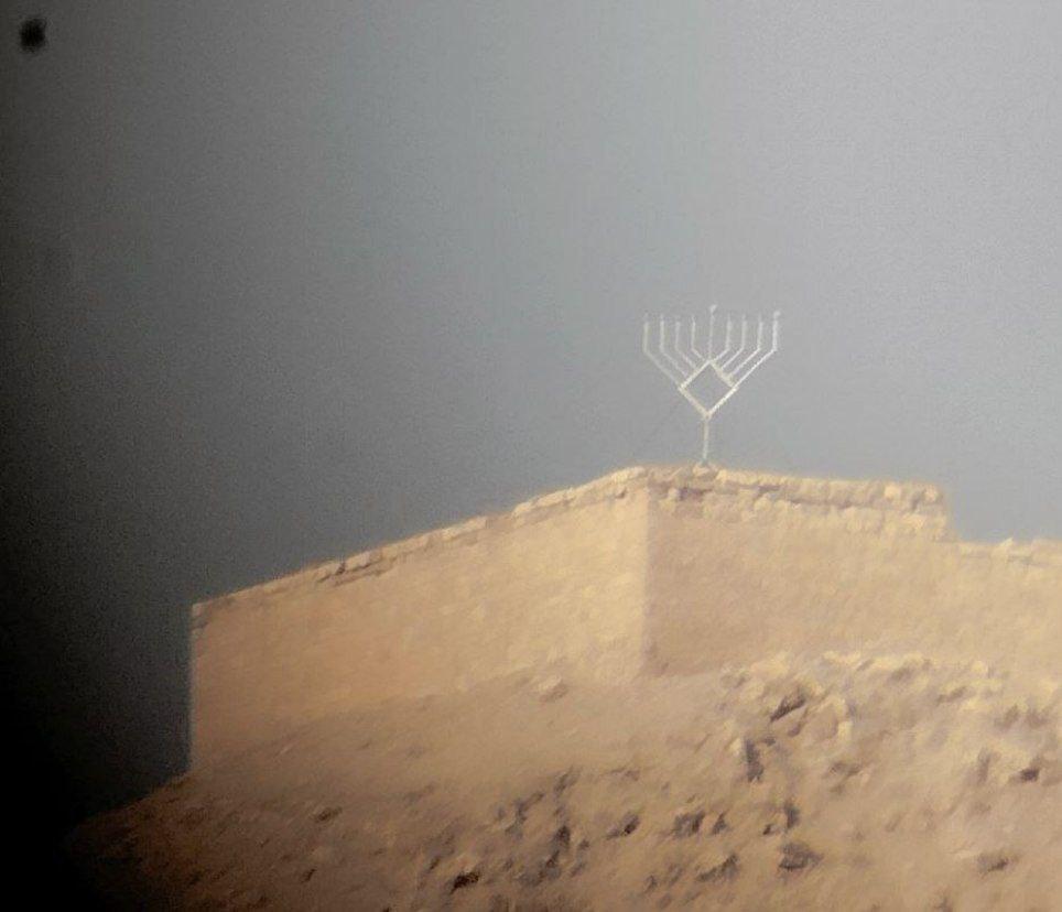 أريحا 26-12-2024 وفا- نصب مستعمرون، اليوم الخميس، شعار "الشمعدان" على قلعة بمدينة أريحا.