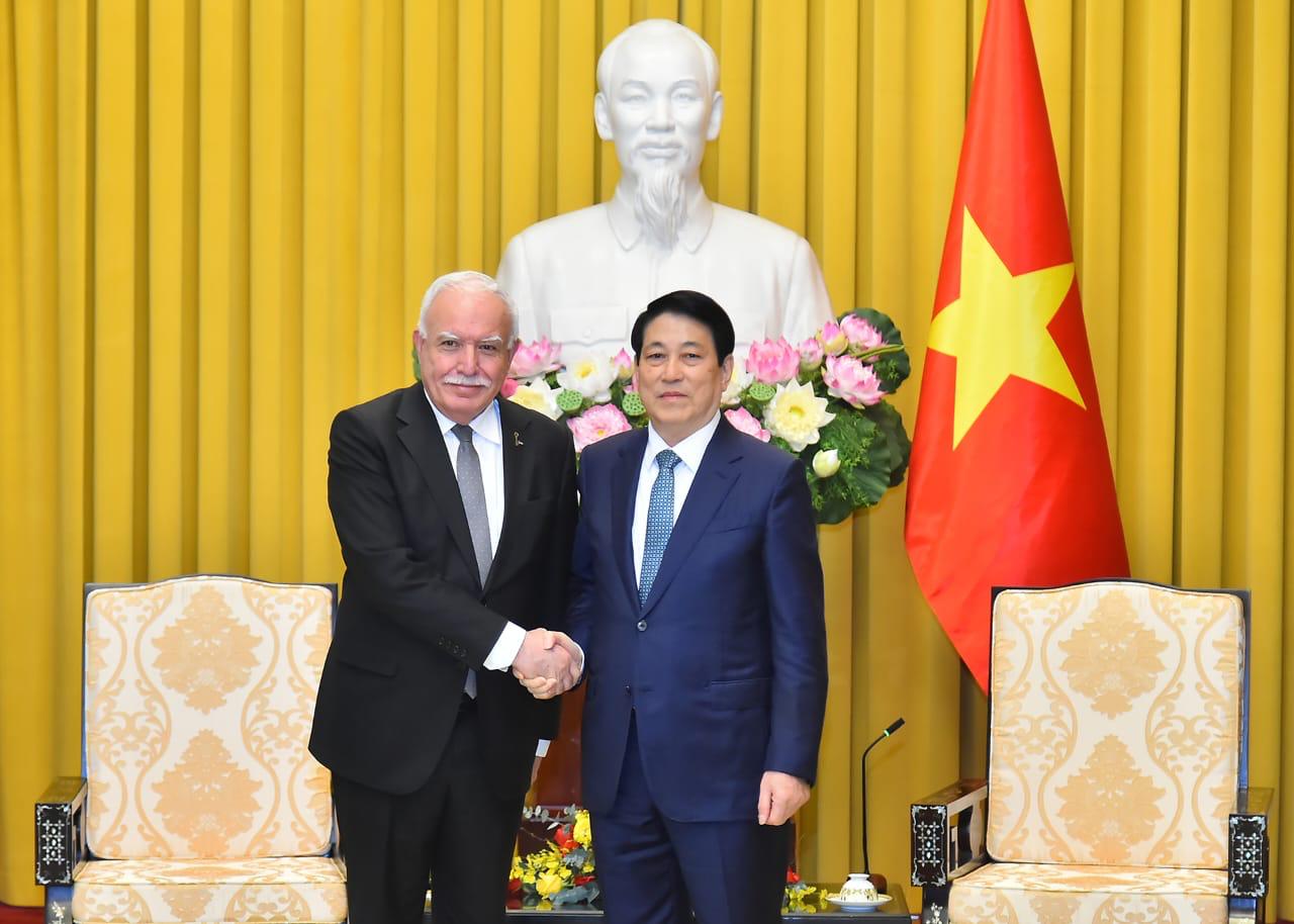 وشكر المالكي، الرئيس الفيتنامي على الدعم الذي تقدمه بلاده للقضية الفلسطينية في جميع المحافل الدولية، ما يعني الكثير لشعبنا الفلسطيني وحكومته، كون فيتنام دولة رفيقة في النضال نحو الحرية.