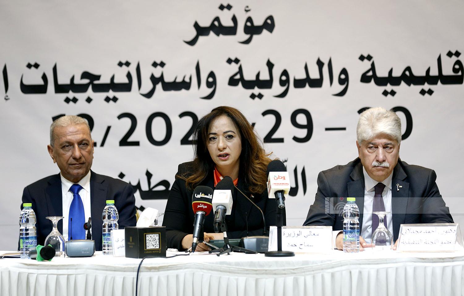 بدورها، أشارت وزيرة التنمية الاجتماعية سماح حمد، في كلمتها نيابة عن رئيس الوزراء، إلى أن الشعب الفلسطيني يواجه تحديات جمة على كافة الأصعدة السياسية والاجتماعية والاقتصادية، مؤكدة أن معاناة أهلنا في قطاع غزة تتفاقم جراء العدوان المستمر والحصار القاسي الذي يعانون منه منذ أكثر من 450 يوما.