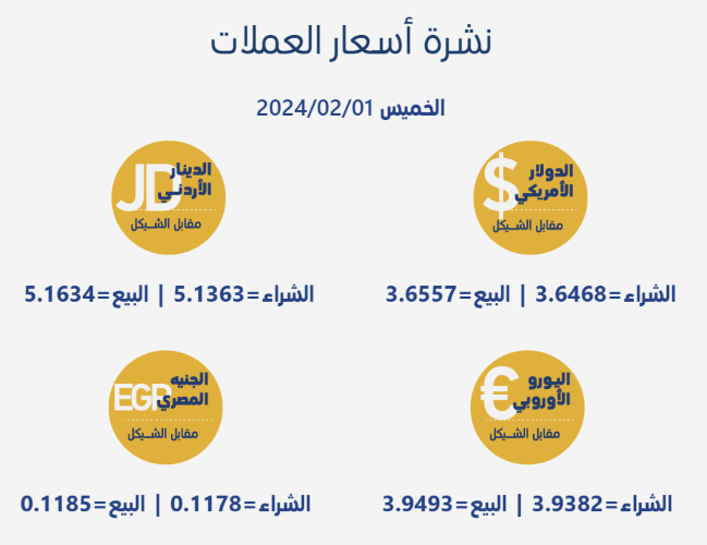 رام الله 1-2-2024 وفا- جاءت أسعار صرف العملات مقابل الشيقل الإسرائيلي، اليوم الخميس، بحسب سلطة النقد الفلسطينية، على النحو التالي: