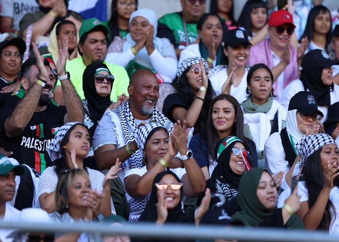وجرى اللقاء بحضور، رئيس جنوب إفريقيا سيريل رامافوزا، ورئيس اتحاد كرة القدم الفريق جبريل الرجوب، وعدد من الشخصيات الاعتبارية ومن الحزب الحاكم في جنوب إفريقيا، والآلاف من الجماهير من جنوب افريقيا، ومن الجالية الفلسطينية، ومن الجاليات العربية، وسط هتافات الدعم والتأييد لفلسطين وقضيتها طوال التسعين دقيقة من زمن اللقاء.