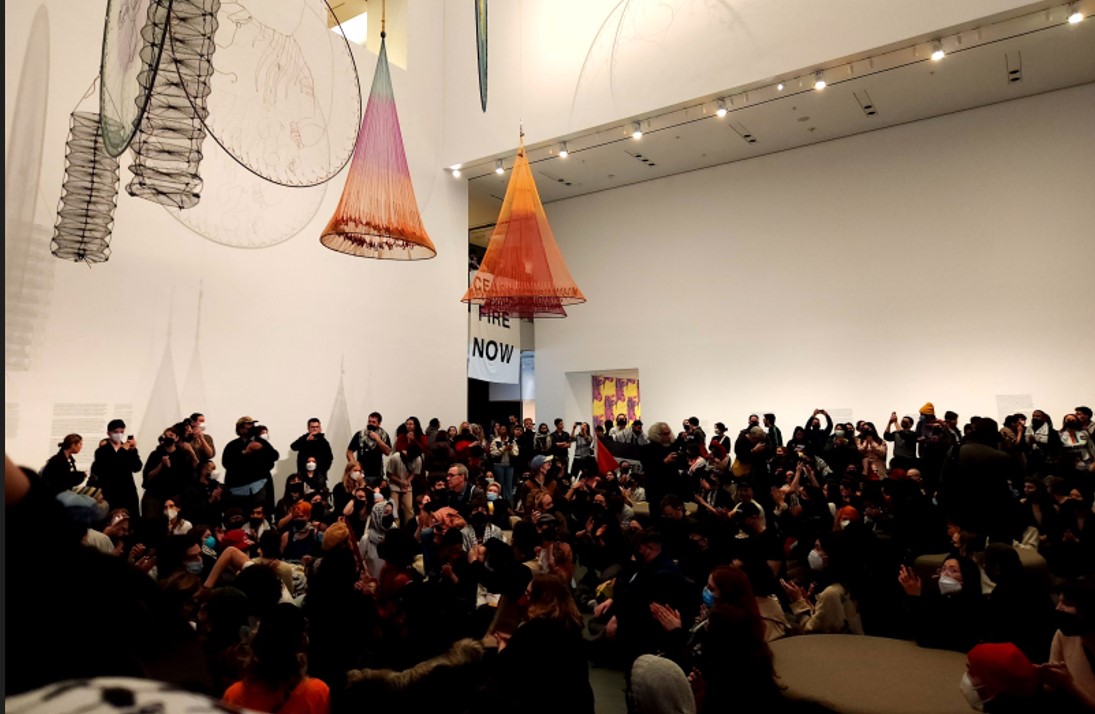وأغلقت إدارة المتحف أبوابه بعد اعتصام المتظاهرين في المبنى المنددين بالعدوان الإسرائيلي على غزة، ومطالبين بإقالة أعضاء في مجلس إدارته بدعوى صلتهم بشركات تصنيع الأسلحة التي تزود الاحتلال الإسرائيلي بالأسلحة.