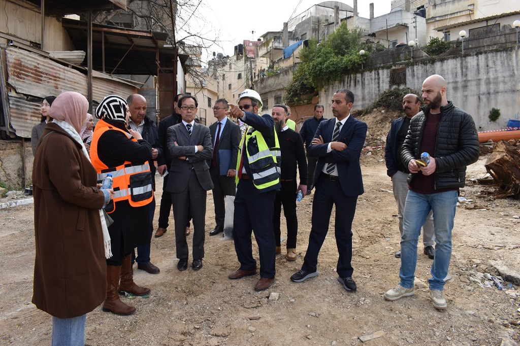 وتفقد الوفد الياباني مشاريع إعادة تأهيل الطرق الجارية حاليًا، ومشروع تأهيل مركز المسنين في المخيم.