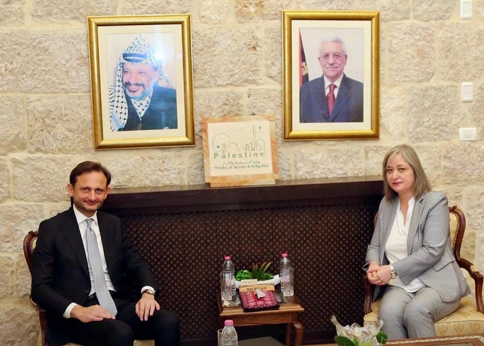 بيت لحم 13-2-2024 وفا- أطلعت وزيرة السياحة والآثار رولا معايعة، اليوم الثلاثاء، القنصل الإيطالي العام الجديد في القدس دومنيكو بيلاتو على الأوضاع التي تمر بها الأراضي الفلسطينية عموما، والسياحية خصوصا.