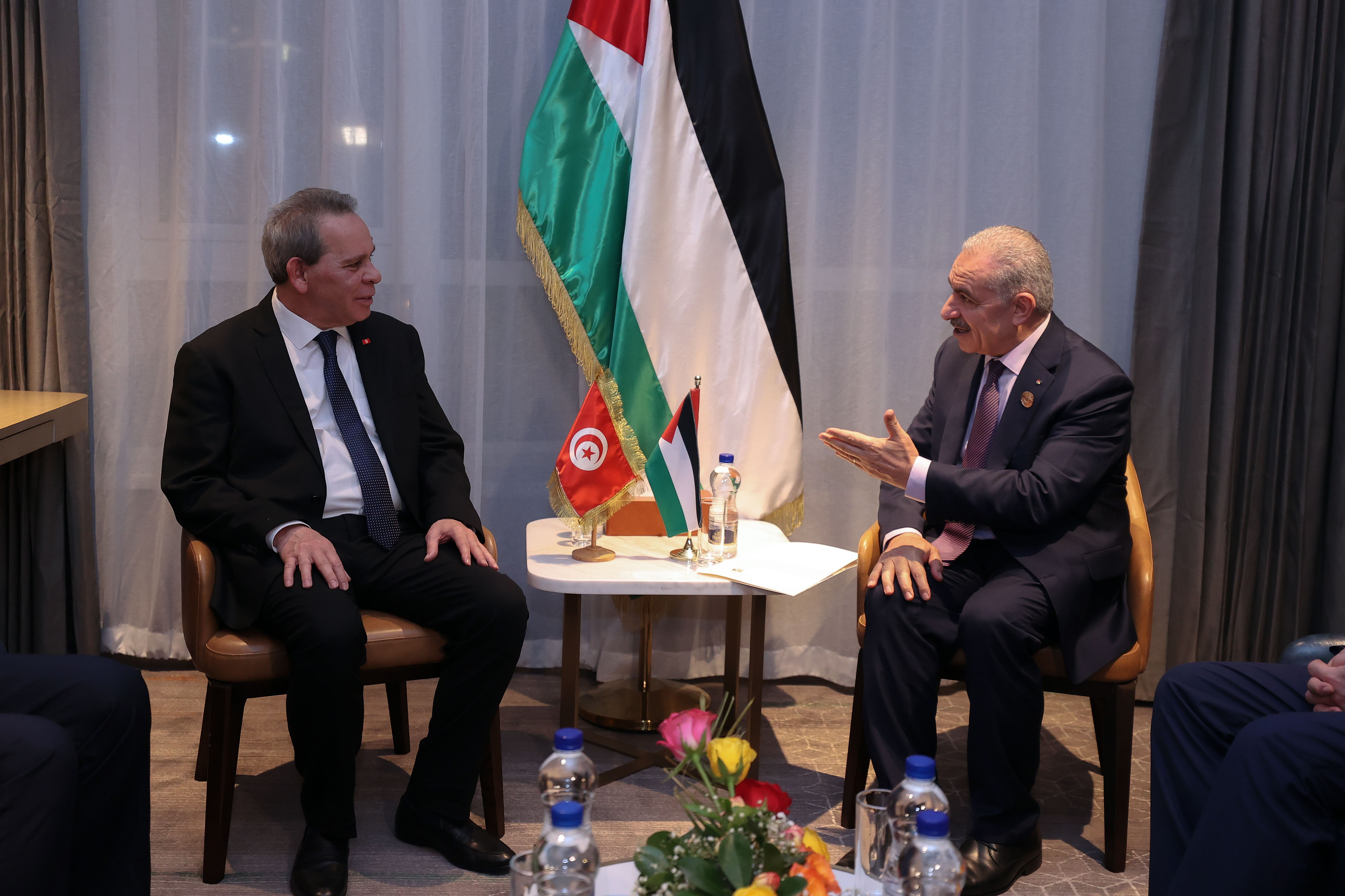 وأطلع رئيس الوزراء نظيره التونسي على الجهود السياسية التي يقودها الرئيس محمود عباس، والمبادرات والأفكار السياسية المطروحة حول خلق مسار سياسي من أجل حل عادل للقضية الفلسطينية.