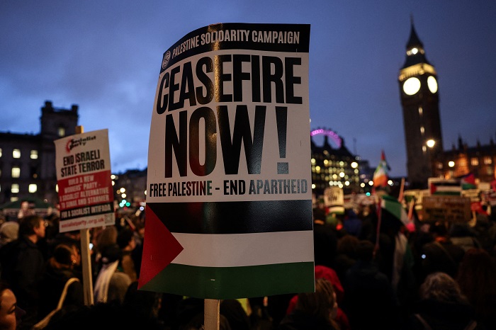 وتجمع المتظاهرون خارج البرلمان دعما للاقتراح الذي تقدم به الحزب الوطني الإسكتلندي ويدعو إلى وقف فوري لإطلاق الناروإنهاء العقاب الجماعي ضد الشعب الفلسطيني، في حين دعا تعديل تقدم به حزب العمال إلى "وقف فوري إنساني لإطلاق النار"، وعملية دبلوماسية لتحقيق حل الدولتين والسلام الدائم.