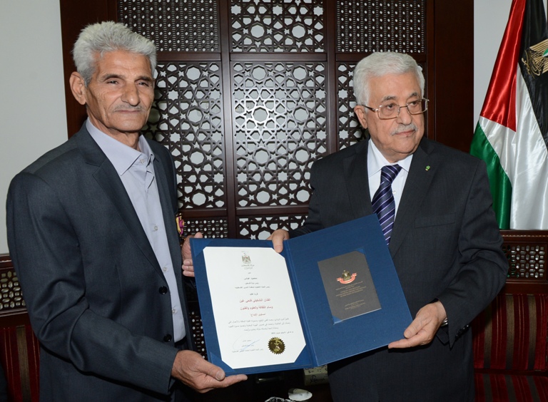 حصل على وسام الثقافة والعلوم من الرئيس محمود عباس عام 2015، كما حصل على وسام هيروشيما، ووسام اتحاد الجمعيات العالمي بطوكيو، وحاز على لقب "فنان فلسطين" عام 1993، وحاز على وسام "سيف كنعان" من إدارة التوجيه الوطني والسياسي الفلسطيني، وتم تكريمه من ممثل الاتحاد الأوروبي بعد حصوله على جائزة بيت الصحافة التقديرية الفلسطينية لعام 2023.