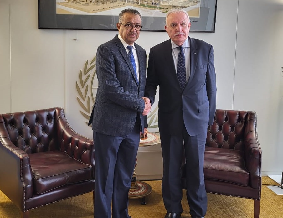جنيف 27-2-2024 وفا- بحث وزير الخارجية والمغتربين رياض المالكي، اليوم الثلاثاء، مع المدير العام لمنظمة الصحة العالمية تيدروس أدهانوم غيبريسوس، طرق تأمين دخول الدواء واللقاحات والمعدات الطبية إلى قطاع غزة، وإقامة المستشفيات الميدانية ودخول الأطباء والعاملين في قطاع الصحة، من أجل مساندة العاملين في القطاع الصحي الفلسطيني.