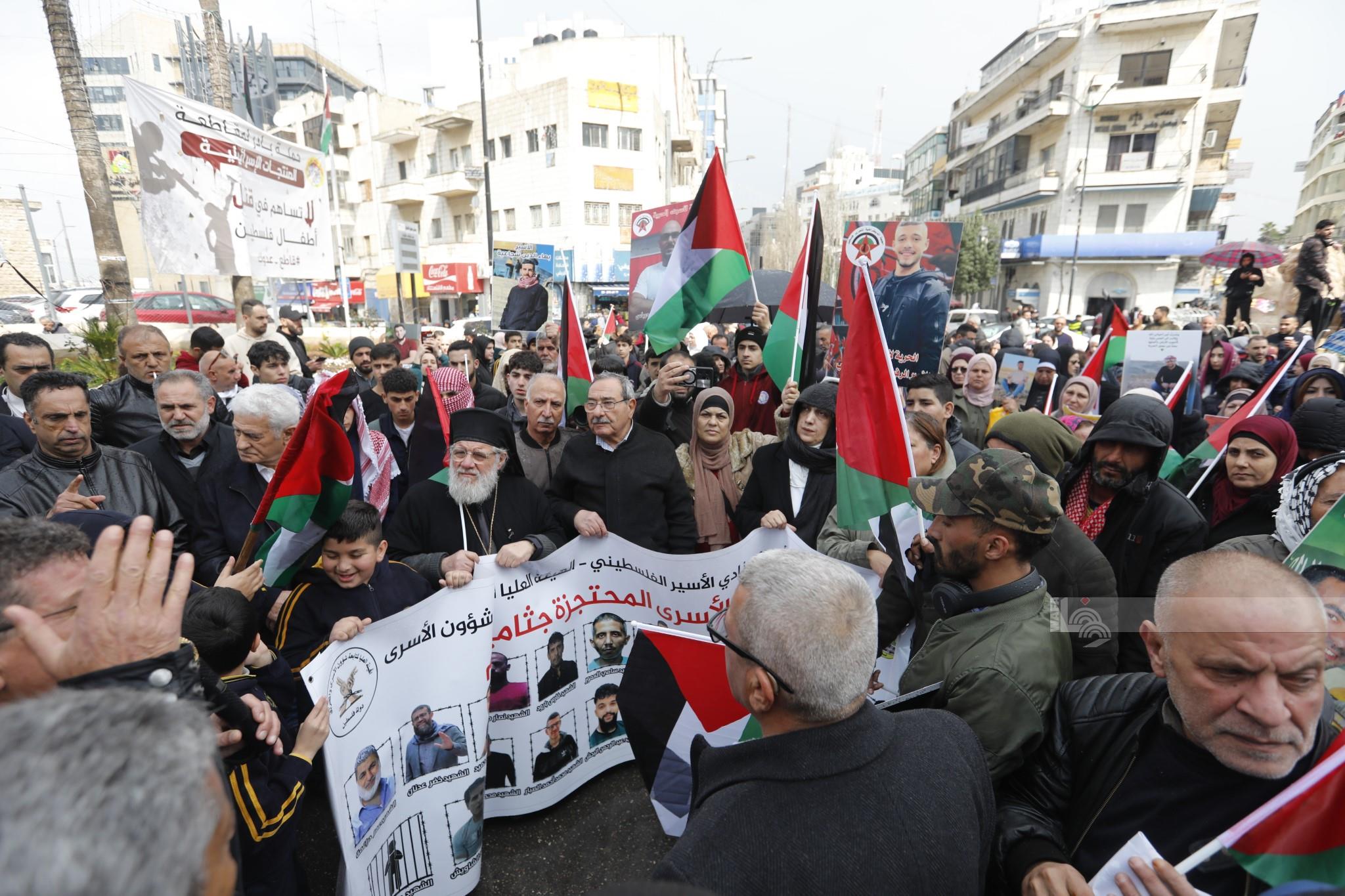وفي نابلس، طالب مشاركون في مسيرة، بضرورة الإفراج عن المعتقلين في سجون الاحتلال وإنقاذ حياتهم.