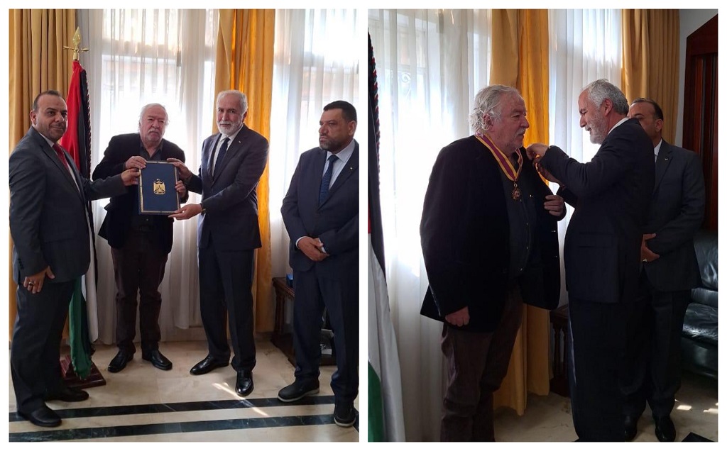 وسلّم سفير فلسطين لدى كولومبيا رؤوف المالكي نيابة عن الرئيس، الشاعر الكولومبي الوسام، بحضور الأمين العام لاتحاد الكتاب والأدباء الفلسطينيين مراد السوداني، ومستشار رئيس المجلس الوطني لشؤون أميركا اللاتينية السفير عبد الناصر عطا.