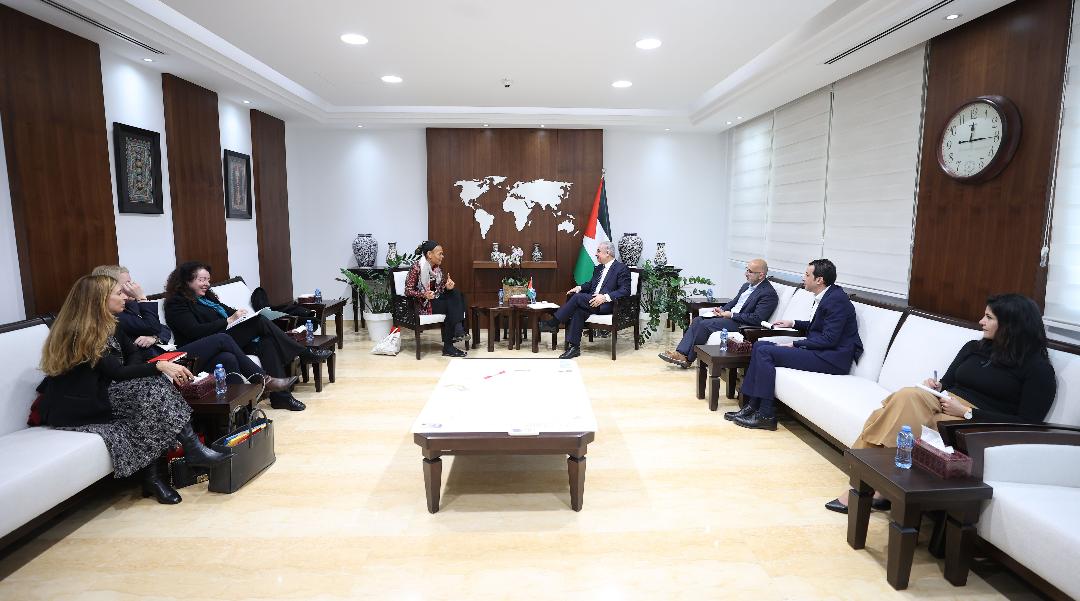 رام الله 6-2-2024 وفا- أطلع رئيس الوزراء محمد اشتية، اليوم الثلاثاء في مكتبه برام الله، المدير العام للوكالة السويسرية للتنمية والتعاون السفيرة باتريشيا دانزي، على تداعيات عدوان الاحتلال على شعبنا في قطاع غزة والضفة الغربية بما فيها القدس.