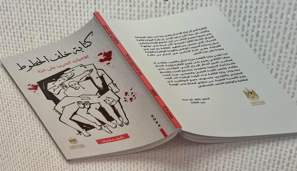 رام الله 6-2-2024 وفا- أطلقت وزارة الثقافة، اليوم الثلاثاء، كتاب "كتابة خلف الخطوط"، الذي يضم شهادات ويوميات لخمسة وعشرين كاتبًا وفنانًا من غزة، وثّقت تجاربهم الأدبية وتفاصيل يومياتهم الشخصية في ظل العدوان الإسرائيلي المستمر على القطاع منذ السابع من تشرين الأول/أكتوبر الماضي.