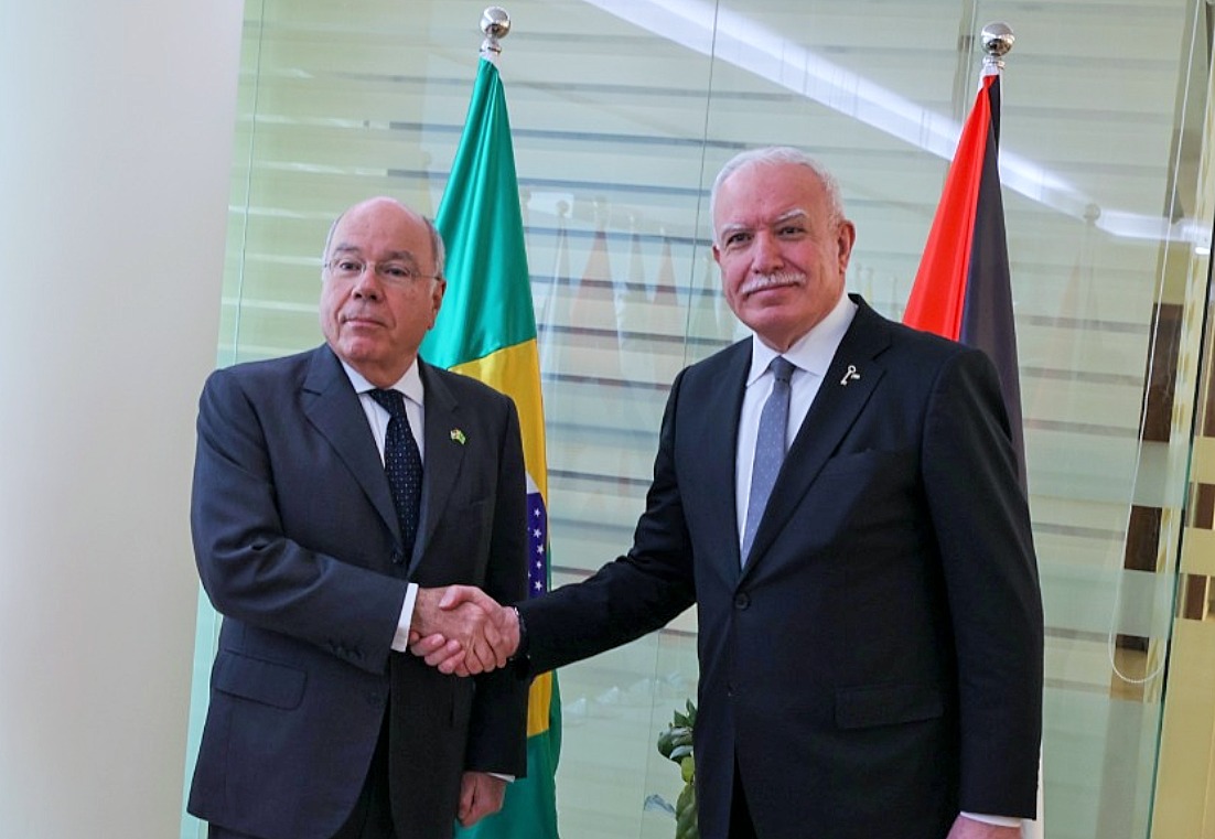 في بداية اللقاء، عبر الوزير المالكي باسم دولة فلسطين والشعب الفلسطيني عن امتنانه وشكره الشديد للبرازيل حكومة وشعبًا على موقفها الداعم والمتضامن مع القضية الفلسطينية، مثمنًا الموقف الشجاع لرئيس البرازيل لويس إيناسيو لولا دا سيلفا، في التزامه الدائم في قول الحقيقة والوقوف مع الشعب الفلسطيني ودعمه اللامحدود لنيل حريته، وقال إن هذا الموقف ليس بجديد على البرازيل التي لطالما دعمت قضيتنا العادلة، لكن بالأخص خلال الأشهر الماضية وخلال استمرار العدوان الإسرائيلي على قطاع غزة، حيث أثبتت البرازيل أنها دولة صديقة ووفية لدولة فلسطين سواء بالبيانات أو بالأفعال عن طريق تقديم المساعدات الإنسانية لغزة وإخلاء الفلسطينيين البرازيليين من القطاع، وجهودها المستمرة لإيقاف حرب الإبادة على قطاع غزة، خاصة دورها في مجلس الأمن، ومشاركة البرازيل في جلسات المرافعات الشفهية لمحكمة العدل الدولية بشأن التبعات القانونية الناشئة عن سياسات إسرائيل وممارساتها في الأرض الفلسطينية المحتلة، بما فيها القدس الشرقية، لا سيما موقفها تجاه الأونروا في ظل استمرار العدوان الإسرائيلي عليها في محاولة إلى تفكيكها والتقليل من دورها بالغ الأهمية.