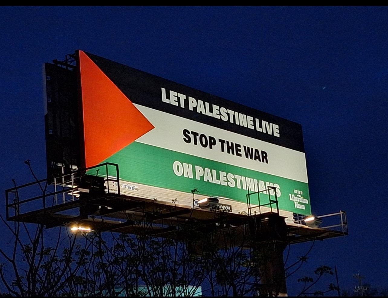 تكساس 17-3-2024 وفا- نشرت العديد من المؤسسات الحقوقية والمجتمعية لوحات إعلانية ضخمة على الشوارع الرئيسية في عدد من المدن الأميركية، تدعو لوقف الحرب على قطاع غزة بشكل فوري، والمطالبة بالحرية للشعب الفلسطيني، وتأكيد الوقوف إلى جانب الحقوق الفلسطينية.