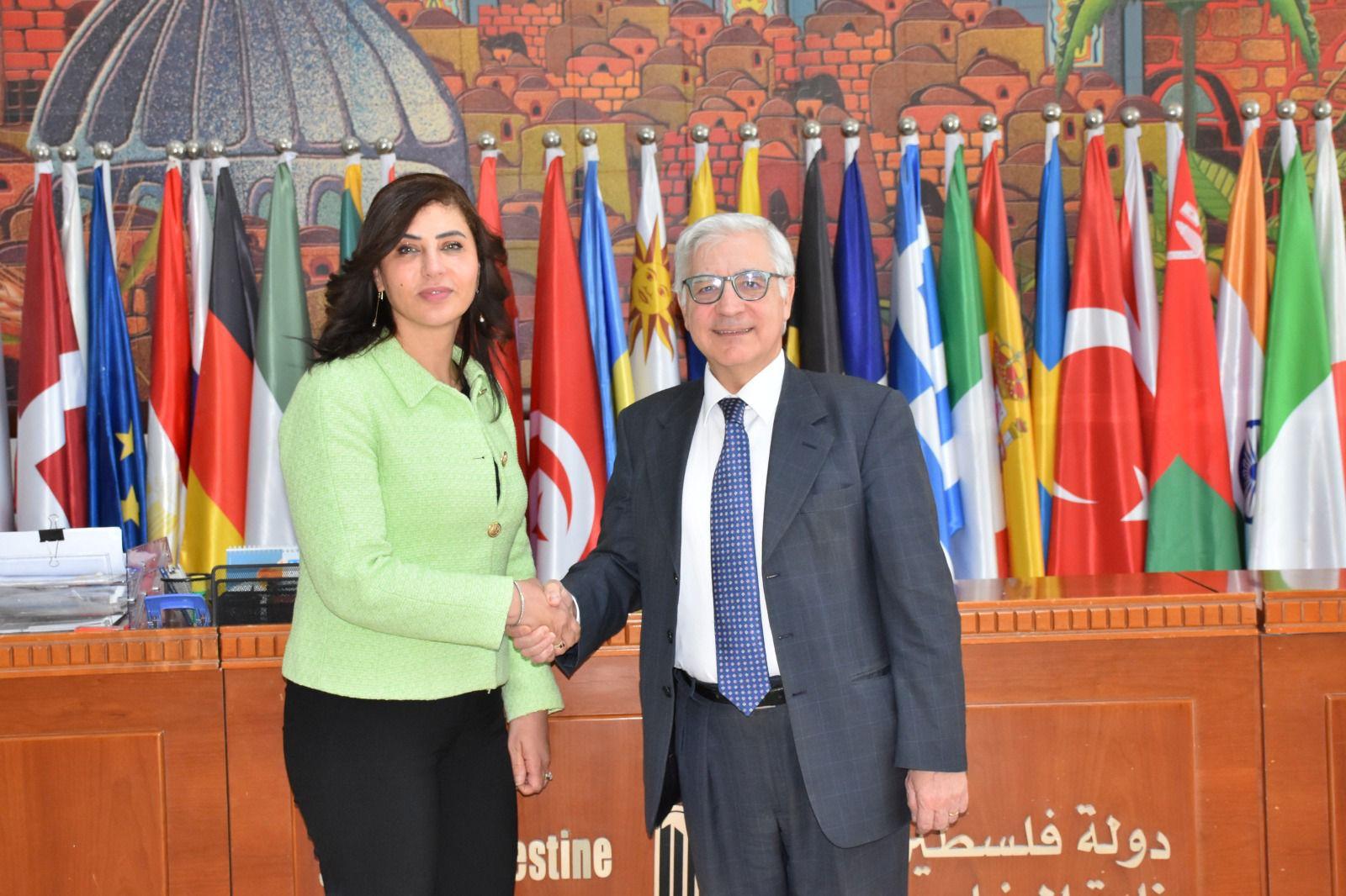 وفي مستهل اللقاء، أشادت جادو شكعة بعلاقات الصداقة المتينة والتاريخية التي تربط بين فلسطين وإيطاليا ودعمها الثابت للشعب الفلسطيني، مشددة على ضرورة الاعتراف بدولة فلسطين لإنقاذ حل الدولتين، الذي بدوره سيحقق السلام والأمن والاستقرار في المنطقة بأكملها.