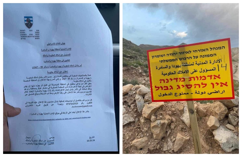 وبيّن شعبان، أن العام الحالي 2024 شهد أكبر عملية استيلاء تحت مسمى أراضي الدولة منذ سنوات طويلة تصل إلى ثلاثة عقود، حيث بلغت المساحات التي استولى عليها الاحتلال تحت هذا المسمى ما مجموعه 10 آلاف و640 دونما في إعلانين منفصلين، الأول جرى قبل شهر واستهدف أراضي العيزرية وأبو ديس واستولى من خلالها على 2640 دونما، والثاني هذا اليوم ويستهدف أراضي الأغوار وتبلغ مساحتها 8000 دونم لصالح إجراء توسعة لمستعمرة "يافيت" المقامة على أراضي المواطنين في قرية فصائل في محافظة أريحا، بالإضافة إلى 500 دونم أخرى جرت عملية الاستيلاء عليها نهاية العام 2023 من أراضي قرية جبع في محافظة القدس.