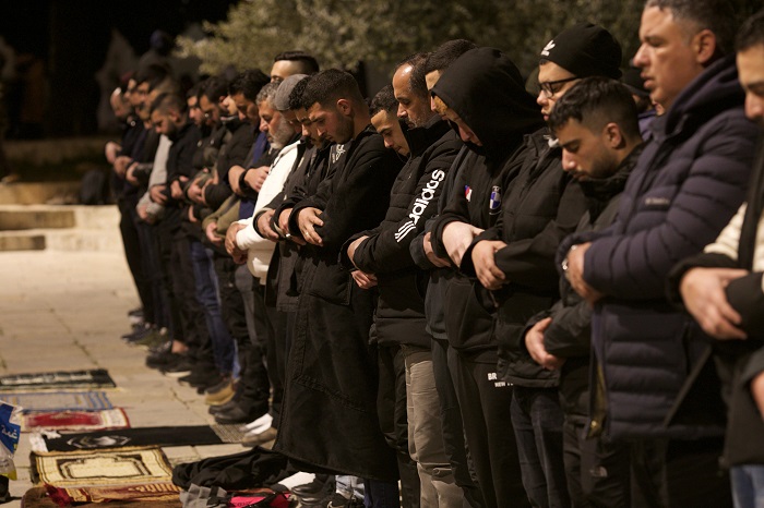 القدس 25-3-2024 وفا- أدى آلاف المواطنين صلاتي العشاء والتراويح في رحاب المسجد الأقصى المبارك، رغم قيود وتضييقات الاحتلال الإسرائيلي.