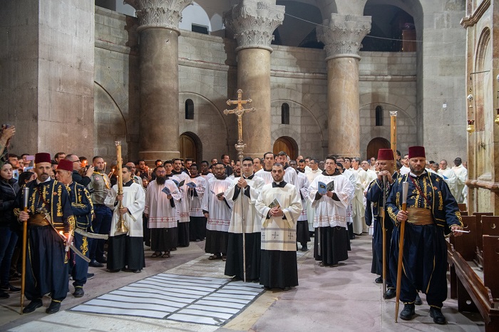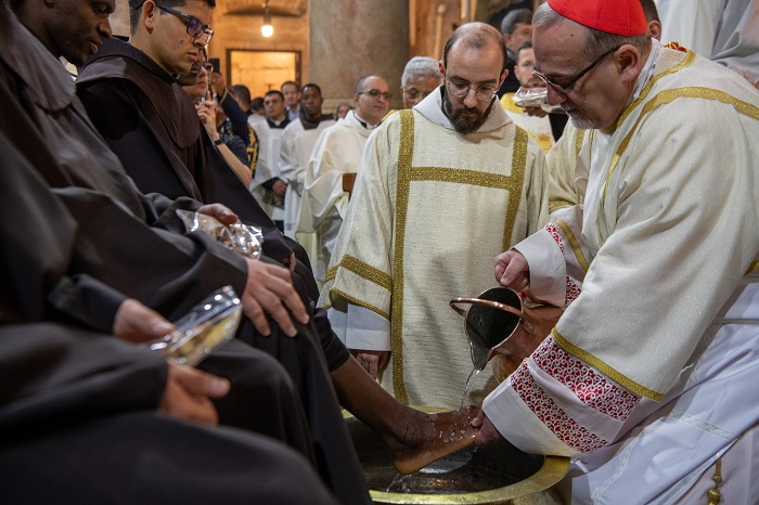 وترأس بطريرك القدس للاتين الكاردينال بييرباتيستا بيتسابالا القداس الاحتفالي ورتبة غسل الأرجل في كنيسة القيامة في القدس المحتلة، بمعاونة لفيف من المطارنة والكهنة والشمامسة والرهبان والراهبات، وبمشاركة أبناء شعبنا المسيحيين، غالبيتهم من مدينة القدس وأراضي الـ48، بعد أن حرم الاحتلال الإسرائيلي الآلاف من المسيحيين من محافظات الضفة الغربية من الوصول إلى المدينة المقدسة.