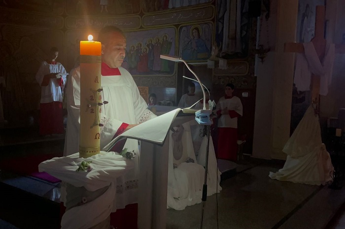 غزة 30-3-2024 وفا- أقامت كنيسة العائلة المقدسة للاتين في مدينة غزة، مساء اليوم السبت، قداس "العشية الفصحية"، استعدادا لاستقبال عيد الفصح المجيد، غدا الأحد، حسب التقويم الغربي.