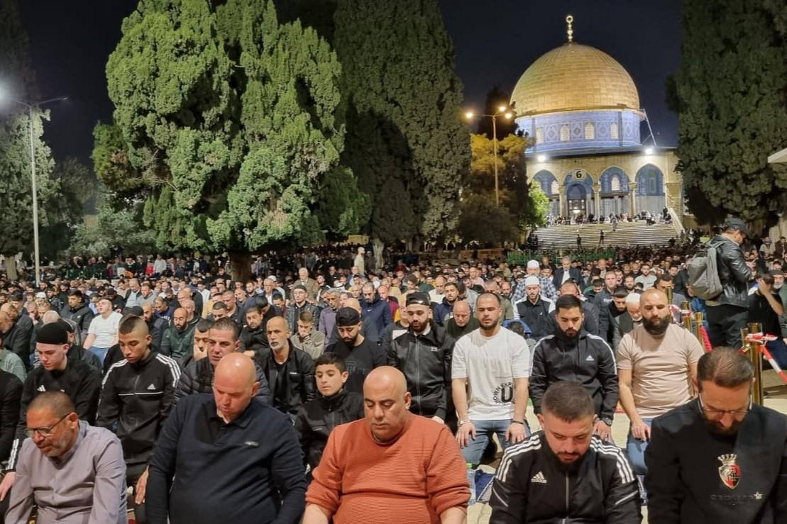 القدس 30-3-2024 وفا- أدى آلاف المواطنين صلاتي العشاء والتراويح في رحاب المسجد الأقصى المبارك، رغم قيود وتضييقات الاحتلال الإسرائيلي.