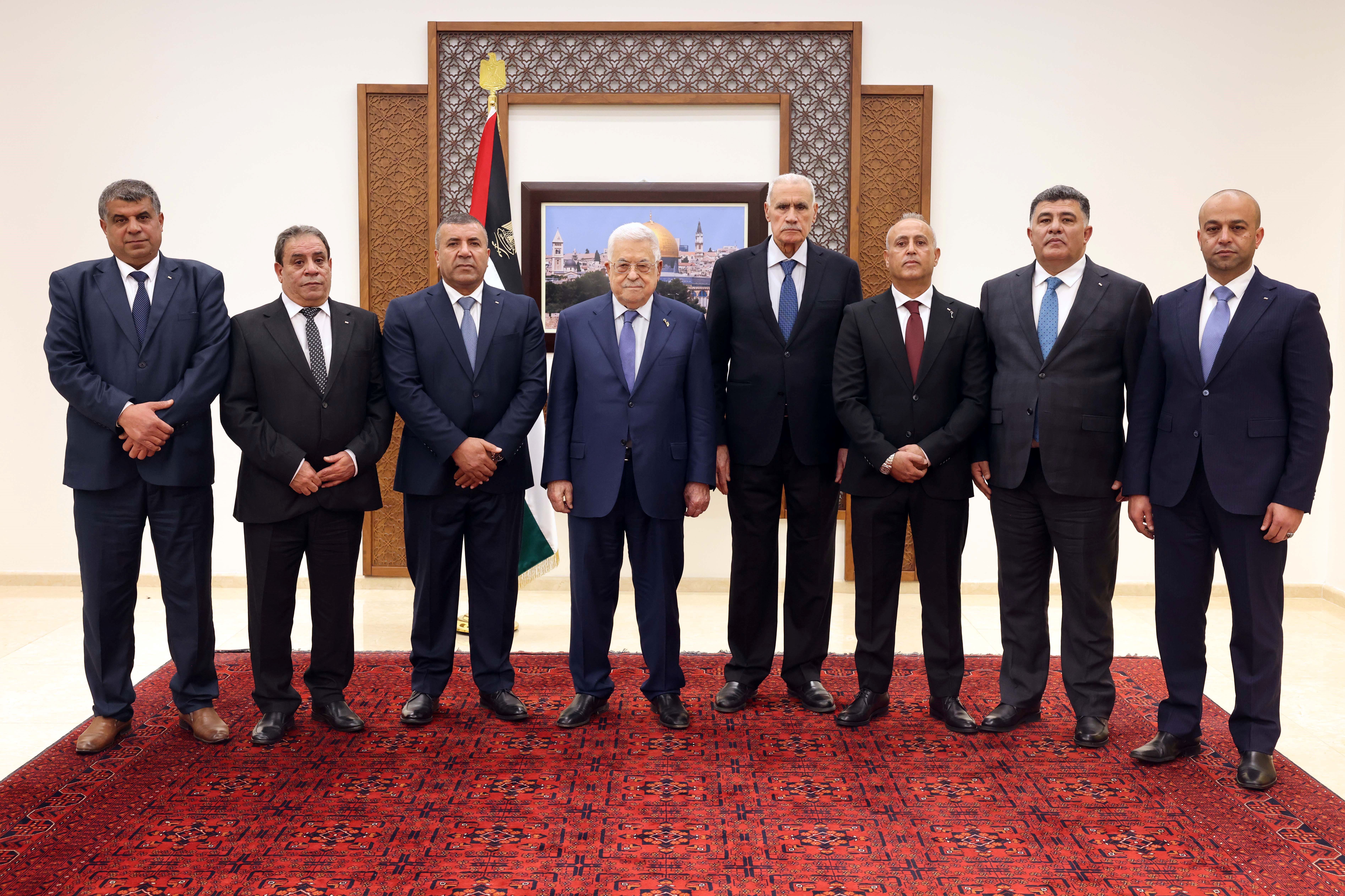 رام الله 9-3-2024 وفا- أدى محافظو محافظات: جنين، والخليل، ونابلس، وأريحا والأغوار، وبيت لحم، وطوباس، اليوم السبت، بمقر الرئاسة بمدينة رام الله، اليمين القانونية أمام رئيس دولة فلسطين محمود عباس.