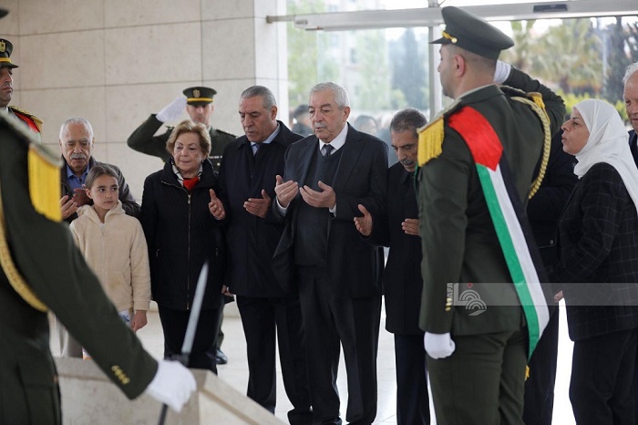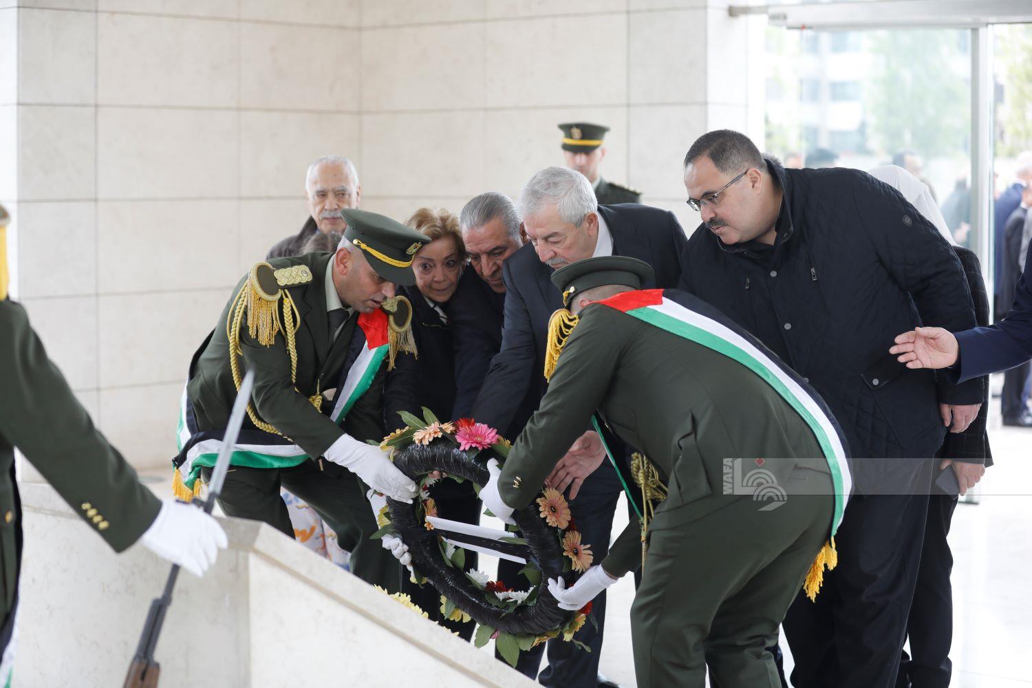 رام الله 10-4-2024 وفا- وضع عدد من أعضاء اللجنة المركزية لحركة التحرير الوطني الفلسطيني "فتح"، اليوم الأربعاء، إكليلا من الزهور على ضريح الرئيس الشهيد ياسر عرفات، بمقر الرئاسة في مدينة رام الله، لمناسبة عيد الفطر المبارك.