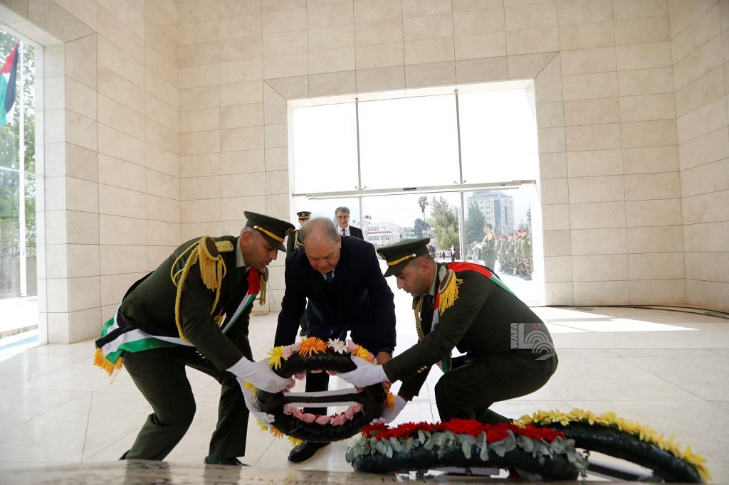 رام الله 10-4-2024 وفا- وضع رئيس المجلس الوطني روحي فتوح، اليوم الأربعاء، إكليلا من الزهور على ضريح الرئيس الشهيد ياسر عرفات، بمقر الرئاسة في مدينة رام الله، لمناسبة عيد الفطر المبارك.