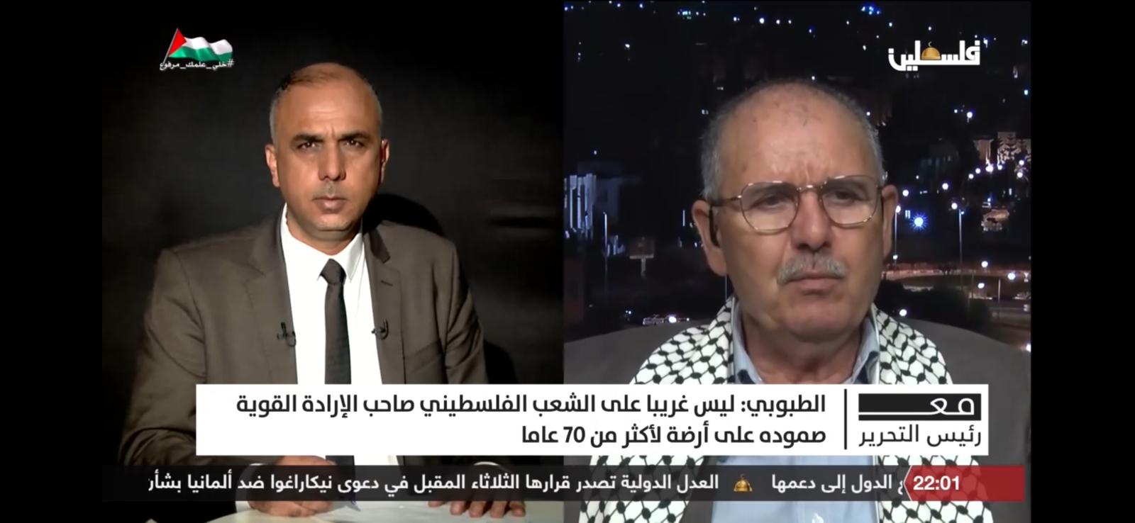 وأضاف أطبوبي في حديث لبرنامج "مع رئيس التحرير" عبر تلفزيون فلسطين، "إن الاتحاد العام التونسي للشغل يجرم في قانونه الأساسي أي نقابي يقوم بالتطبيع مع الجانب الاسرائيلي، ونحن نشعر بفخر كبير عند الدفاع عن هذه القضية وعن القدس الشريف".