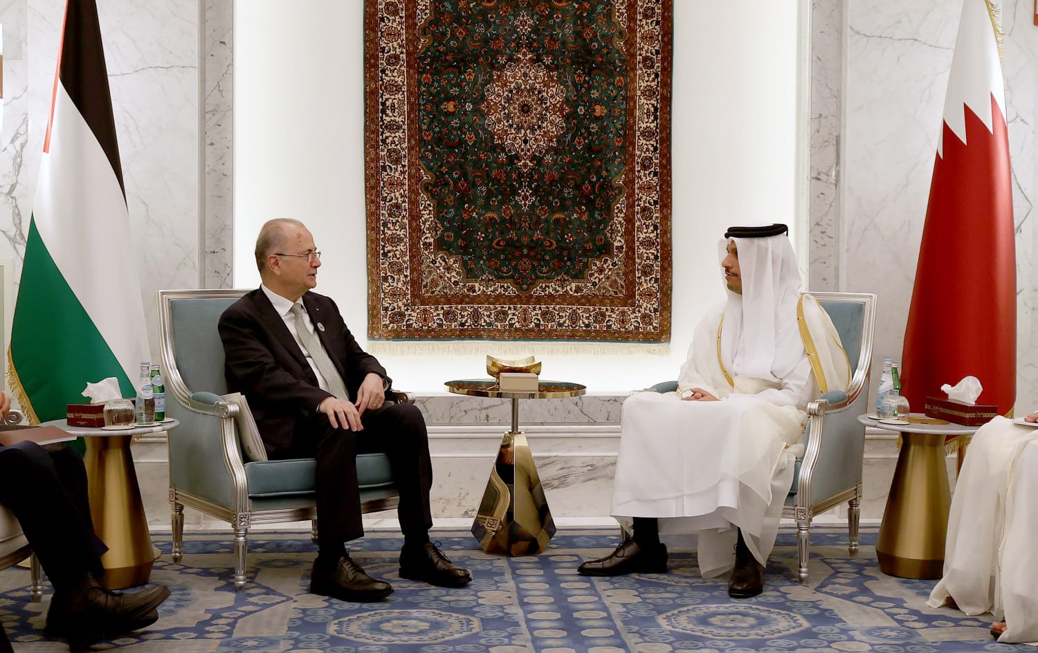 من جانبه، أكد رئيس الوزراء القطري موقف بلاده الثابت والداعم للحقوق المشروعة للشعب الفلسطيني، وفي مقدمته إقامة الدولة الفلسطينية المستقلة على حدود عام 1967، وعاصمتها القدس الشرقية، وأهمية تعزيز الجهود الإقليمية والدولية لوقف فوري لإطلاق النار، وتسهيل دخول المساعدات الإنسانية إلى مناطق القطاع كافة دون عوائق.