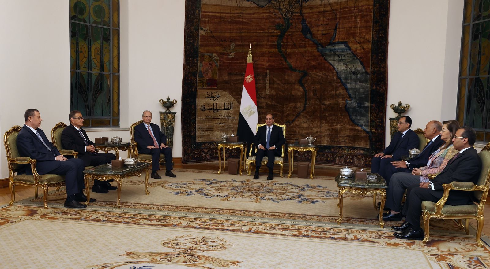 ونقل رئيس الوزراء تحيات سيادة الرئيس محمود عباس للرئيس المصري السيسي، وهنأه لمناسبة أدائه اليمين الدستورية لتولي فترة رئاسية جديدة، حاملا رسالة محبة وشكر وتقدير من القيادة والشعب الفلسطيني، ومثمنا موقف مصر الثابت والداعم تاريخيا لفلسطين وقضيتها.