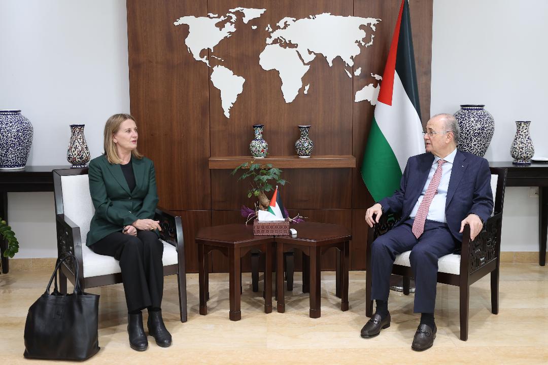 رام الله 8-4-2024 وفا- استقبل رئيس الوزراء، وزير الخارجية، محمد مصطفى، اليوم الاثنين في مكتبه برام الله، المبعوثة النرويجية لعملية السلام في الشرق الأوسط هيلدا هارالدستاد، وبحث معها دعم جهود الإغاثة لأهلنا في قطاع غزة وأجندة مؤتمر المانحين القادم، بحضور وزير التخطيط والتعاون الدولي وائل زقوت، وممثلة النرويج لدى فلسطين تورن فيستي.