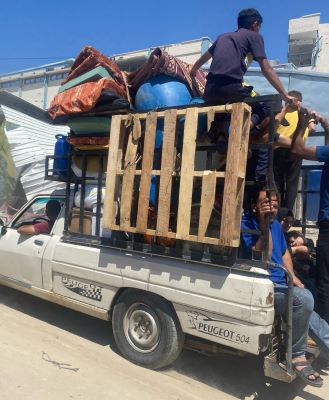 قبل أن ينته عاهد عقل وإخوته من تحميل خيامهم ومتاعهم، صعد أطفالهم وزوجاتهم على قاطرة يجرها جرار استعدادا للنزوح من مدينة رفح، جنوب قطاع غزة، متوجهين إلى منطقة "المواصي" غرب خان يونس.