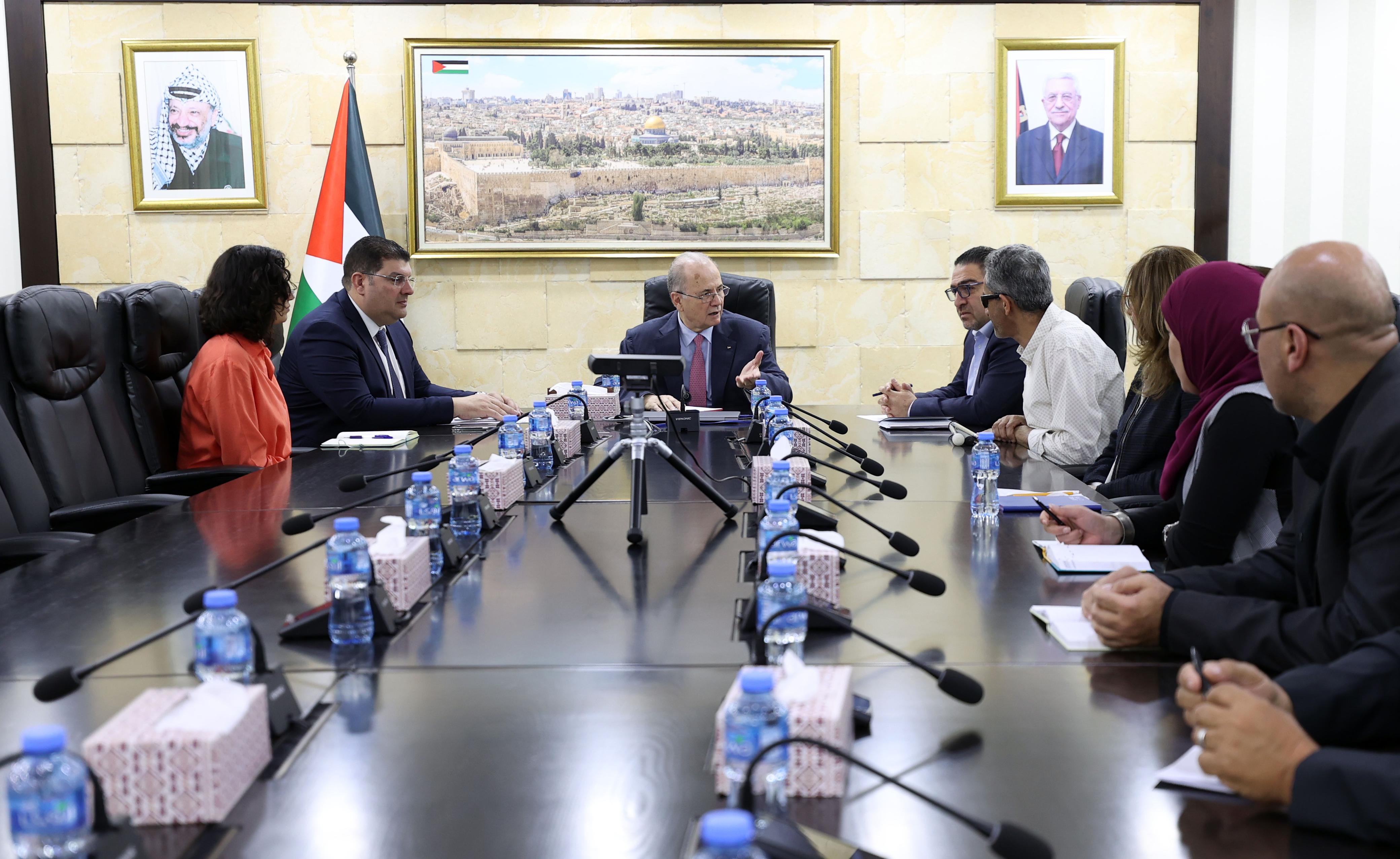 رام الله 2-5-2024 وفا- بحث رئيس الوزراء وزير الخارجية محمد مصطفى، اليوم الخميس، في مكتبه برام الله، مع وفد من الهيئة المستقلة لحقوق الإنسان "ديوان المظالم"، برئاسة المدير العام للهيئة عمار الدويك، عددا من القضايا ذات الاهتمام المشترك وعلى رأسها ملف الإصلاح.