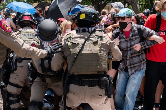 وفي جامعة تكساس في دالاس، فكّكت الشرطة الأميركية مخيما احتجاجيا وأوقفت 17 شخصا على الأقل بتهمة "التعدي الإجرامي" وفق ما ذكرت الجامعة.