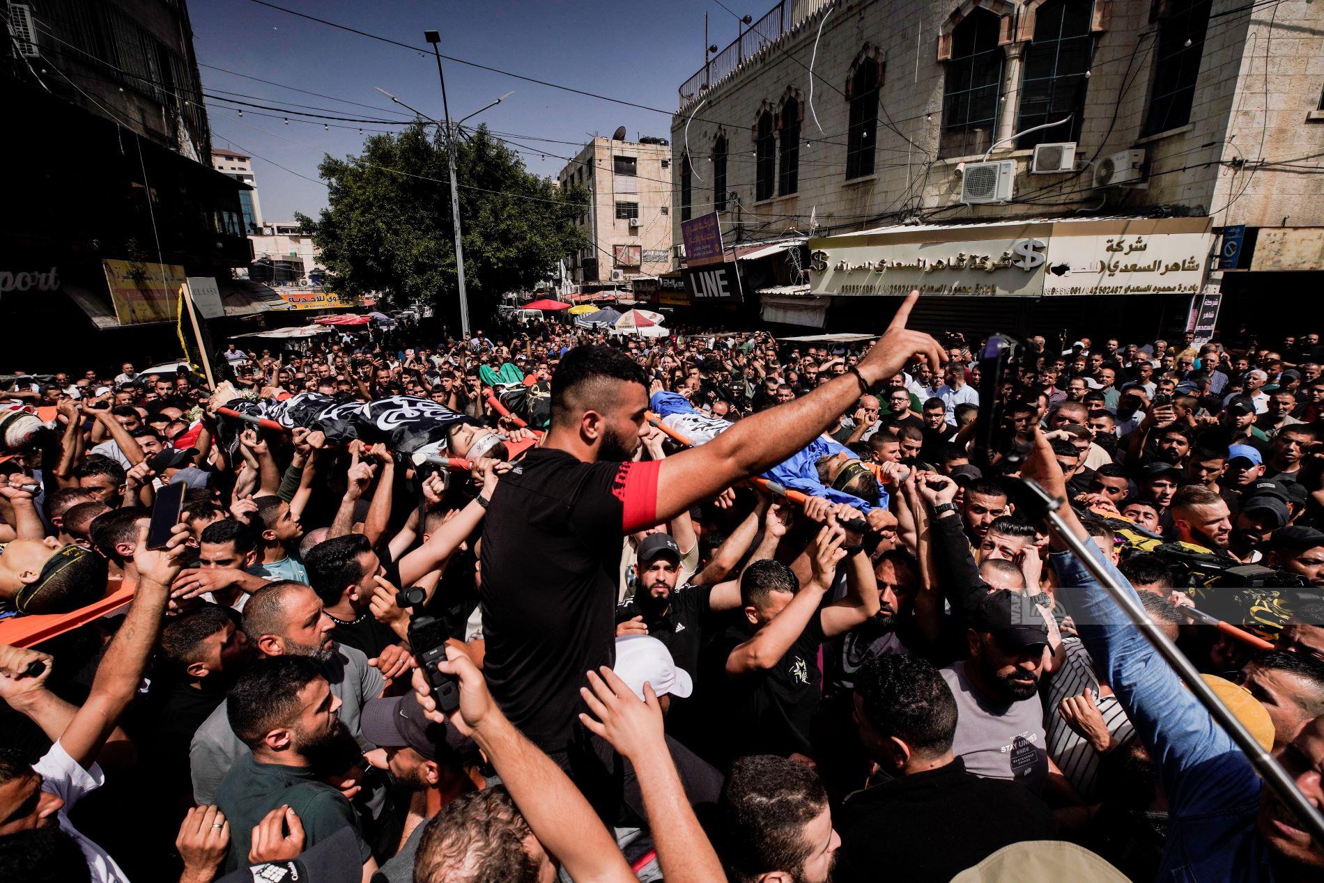 وانطلقت مراسم تشييع الشهداء من أمام مستشفى جنين الحكومي، بمشاركة آلاف المواطنين، حيث رفعت جثامين الشهداء على الأكتاف، وجاب المشيعون شوارع المدينة، قبل الصلاة عليهم في مسجد جنين الكبير، ومواراتهم الثرى في مقابر الشهداء في الحي الشرقي والحي الغربي ومخيم جنين والسيلة الحارثية.