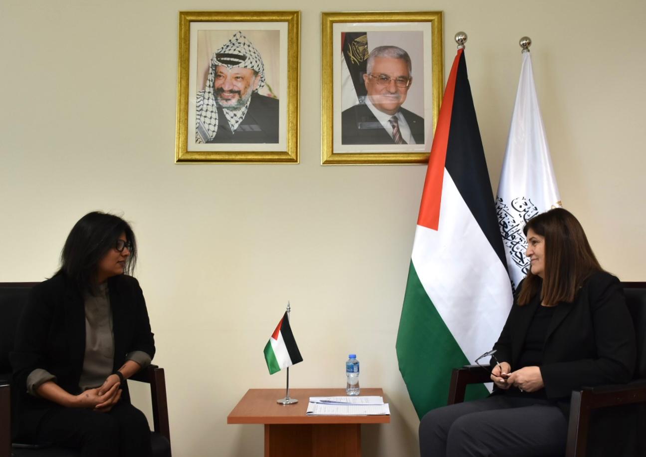 وأكدت ضرورة تعزيز العلاقات الثنائية بين البلدين عن طريق استكمال المشاورات السياسية وزيادة المشاريع التنموية والبرامج التدريبية والمنح الدراسية التي تقدمها الهند لدولة فلسطين.