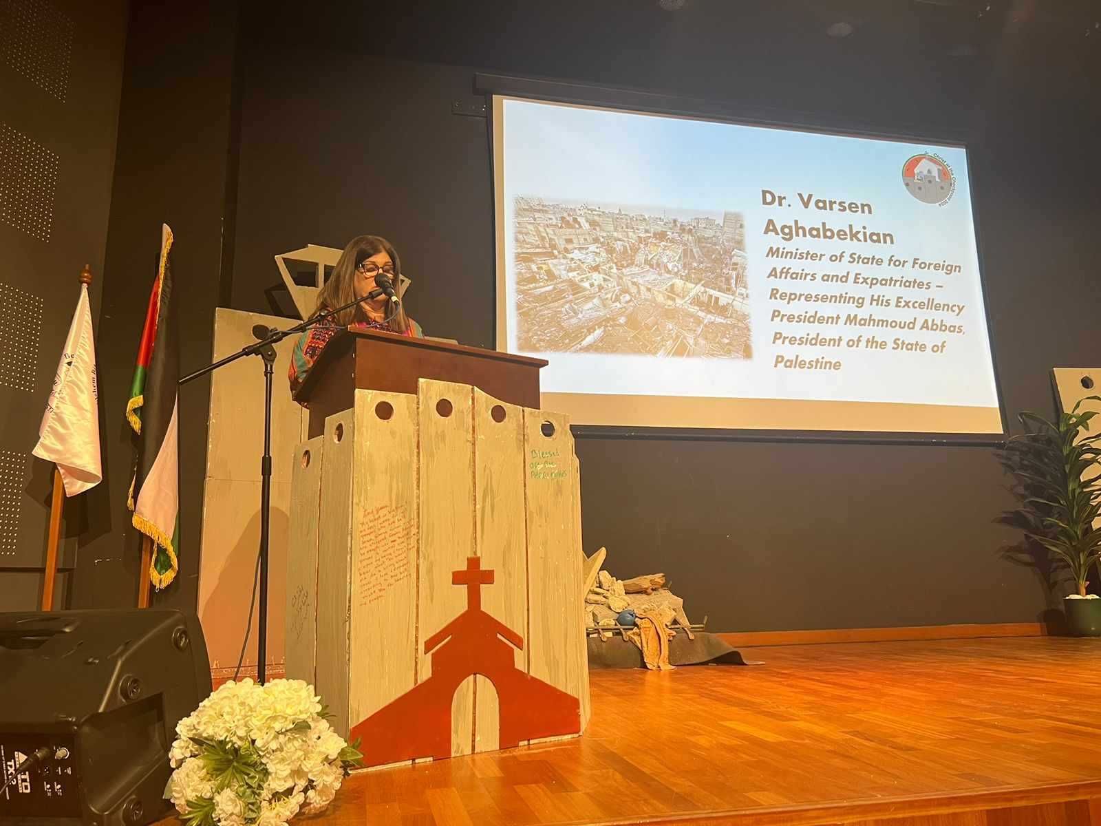 بيت لحم 23-5-2024 وفا- شاركت وزيرة الدولة لشؤون وزارة الخارجية والمغتربين فارسين شاهين، ممثلا عن رئيس دولة فلسطين محمود عباس، في الجلسة الافتتاحية للمؤتمر الدولي السابع "المسيح أمام الحاجز" الذي تنظمه كلية بيت لحم للكتاب المقدس.
