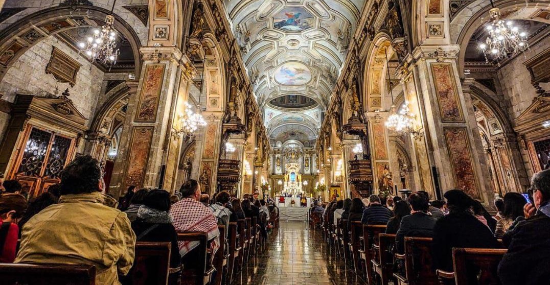 سانتياغو 10-6-2024 وفا- أُقيمت في كاتدرائية سانتياغو بتشيلي، صلاة مسكونية من أجل فلسطين وشعبها، برئاسة رئيس أساقفة سانتياغو فرناندو شومالي، ورئيس أساقفة الروم الأرثوذكس مطران سانتياغو وسائر أرجاء تشيلي سيرجيو عباد.