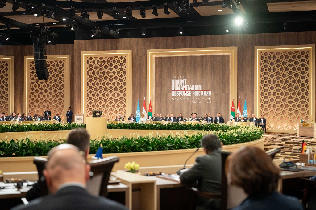 وانعقد المؤتمر، برئاسة مشتركة بين العاهل الأردني الملك عبدالله الثاني، والرئيس المصري عبدالفتاح والأمين العام للأمم المتحدة أنطونيو غوتيريش. وشارك في المؤتمر، قادة دول ورؤساء حكومات ورؤساء منظمات إنسانية وإغاثية دولية.