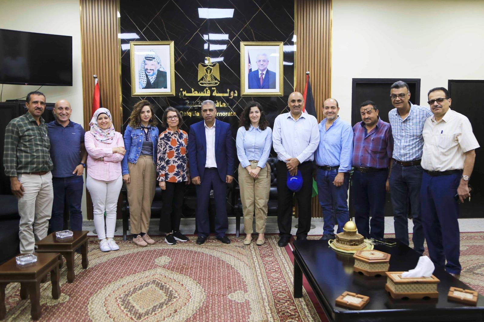 وخلال اللقاء، شكر المحافظ الوفد على الزيارة واهتمامه بمحافظة قلقيلية، وقدم شرحا عن محافظة قلقيلية التي تعاني ظروفا استثنائية نتيجة للجدار والاستعمار وإجراءات الاحتلال اليومية بحق المواطنين، مؤكدا أهمية دعم المشروعات الزراعية في المحافظة، لتعزيز صمود المواطنين وتمكينهم من زراعة أرضهم واستثمارها على أكمل وجه، وتطرق إلى الانعكاسات الإيجابية لمشروع "ترابط" على القطاع الزراعي في هذه المنطقة الزراعية الهامة التي تقع خلف الجدار.