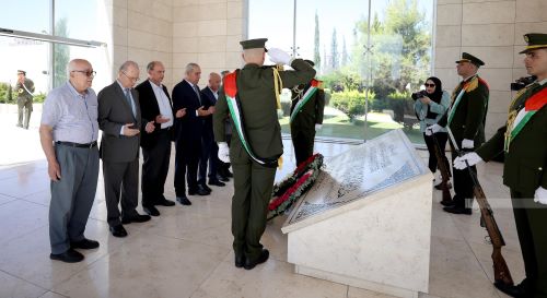 رام الله 16-6-2024 وفا- وضع رئيس الوزراء وزير الخارجية د. محمد مصطفى، اليوم الأحد، إكليلا من الزهور على ضريح الرئيس الشهيد ياسر عرفات، بمناسبة عيد الأضحى المبارك، بمشاركة عدد من أعضاء الحكومة.