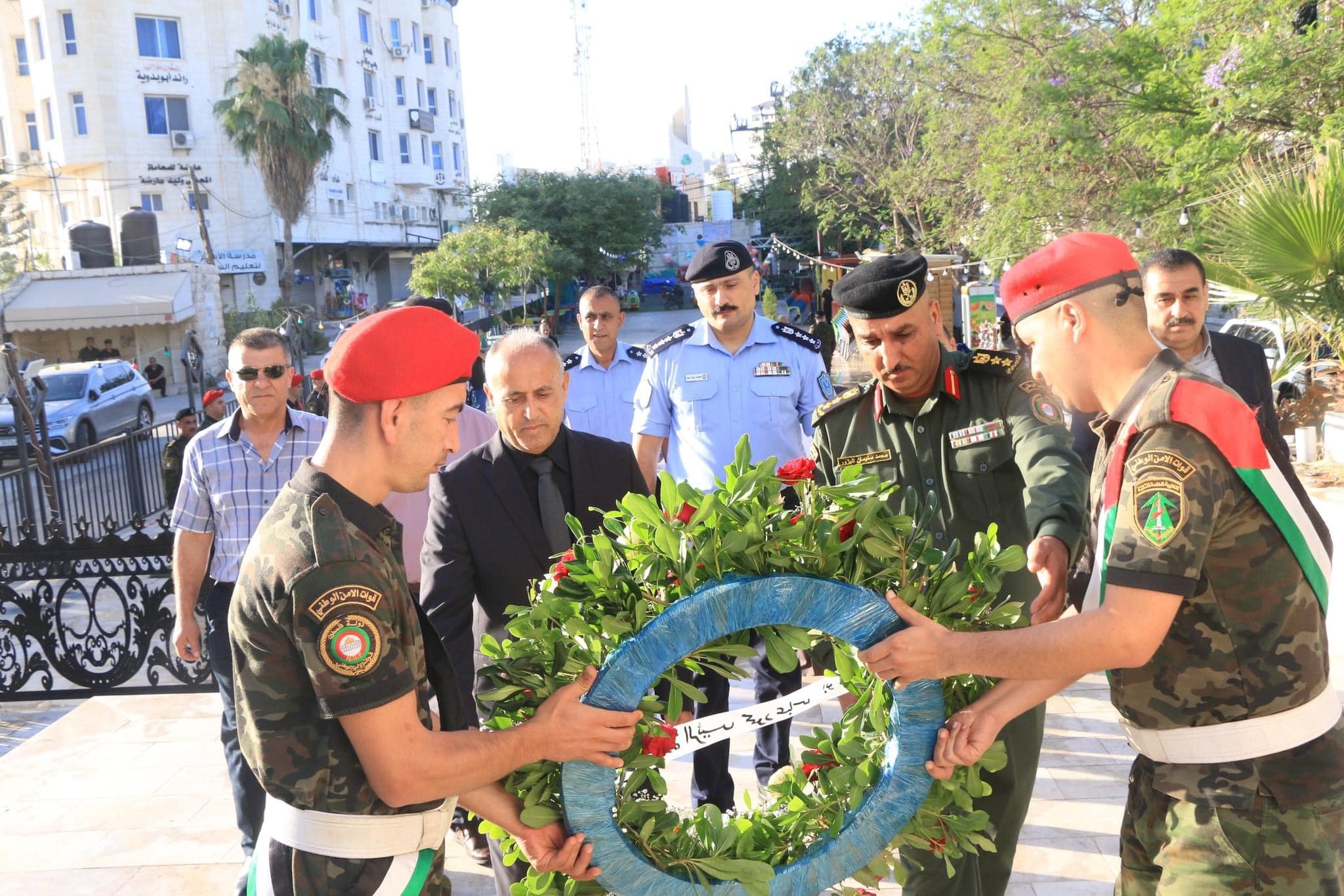 جنين 16-6-2024 وفا- وضع محافظ جنين كمال أبو الرب، اليوم الأحد، إكليلا من الزهور على "صرح الشهيد" أمام مقر المحافظة بميدان الشهيد أبو عمار، باسم الرئيس محمود عباس، لمناسبة عيد الأضحى المبارك .