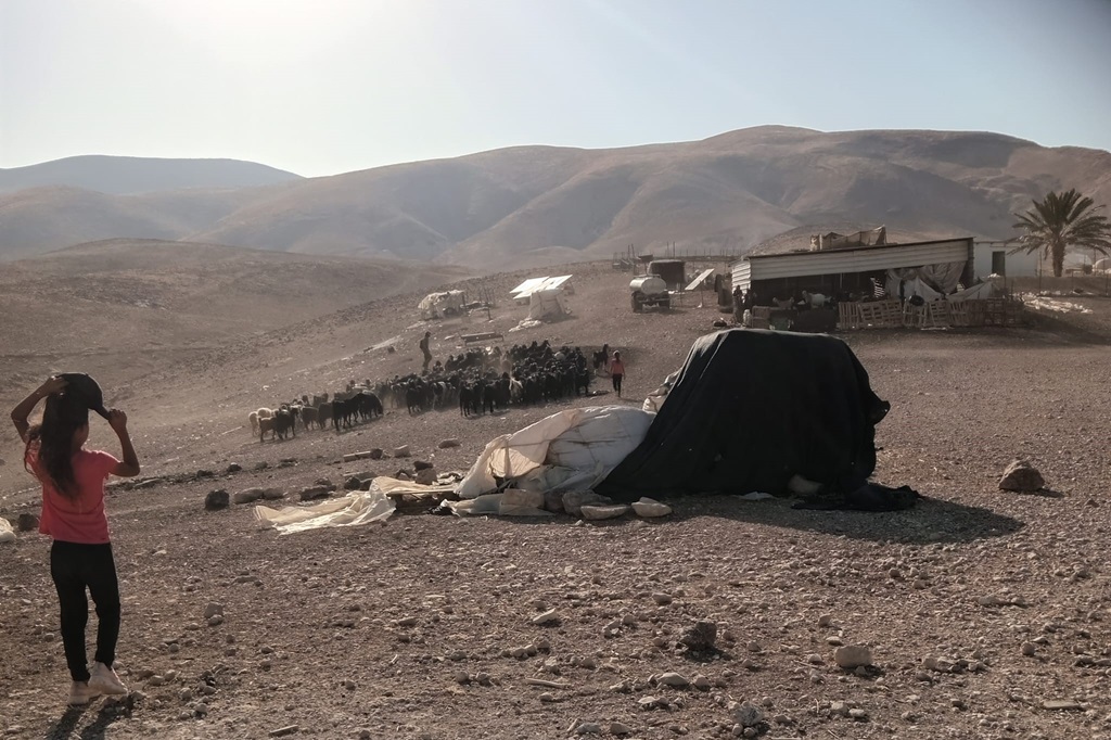ويقول غوانمة، "منذ أسبوعين تقريبا وسحابة المستعمرين تغطي التجمع، يقتحمون المساكن ويستولون على مواشينا بحماية قوات الاحتلال الإسرائيلي".