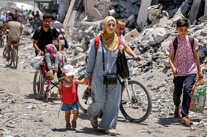 نزوح المواطنين من الأحياء الشرقية لمدينة غزة (أ ف ب)