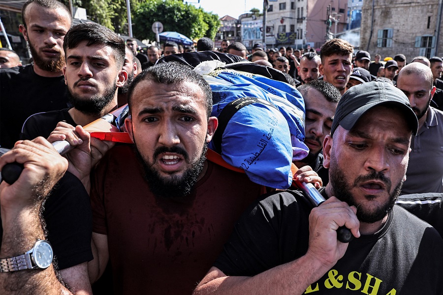 طولكرم 30-6-2024 وفا- شيعت جماهير شعبنا في طولكرم مساء اليوم الأحد، جثمان الشهيد سعيد عزت جابر (24 عاما)، في مخيم نور شمس شرق مدينة طولكرم.
