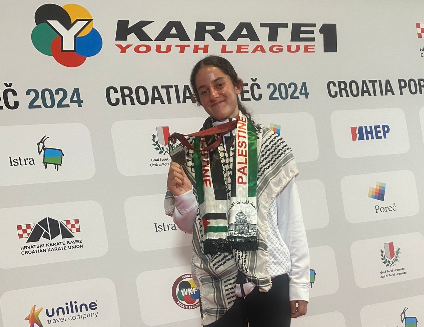 القدس 30-6-2024 وفا- حققت لاعبة منتخبنا الوطني للكاراتيه مريم بشارات، برونزية بطولة الدوري العالمي، التي أقيمت منافساتها في مدينة برتيش الكرواتية.
