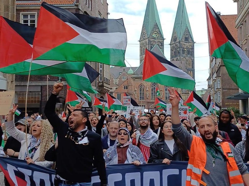 وأشاد المتظاهرون بالدول الأوروبية التي اعترفت بدولة فلسطين، وطالبوا الحكومة الألمانية بضرورة الاعتراف بالدولة الفلسطينية كما فعلت إسبانيا والنرويج وإيرلندا وسلوفينيا وغيرها من الدول.