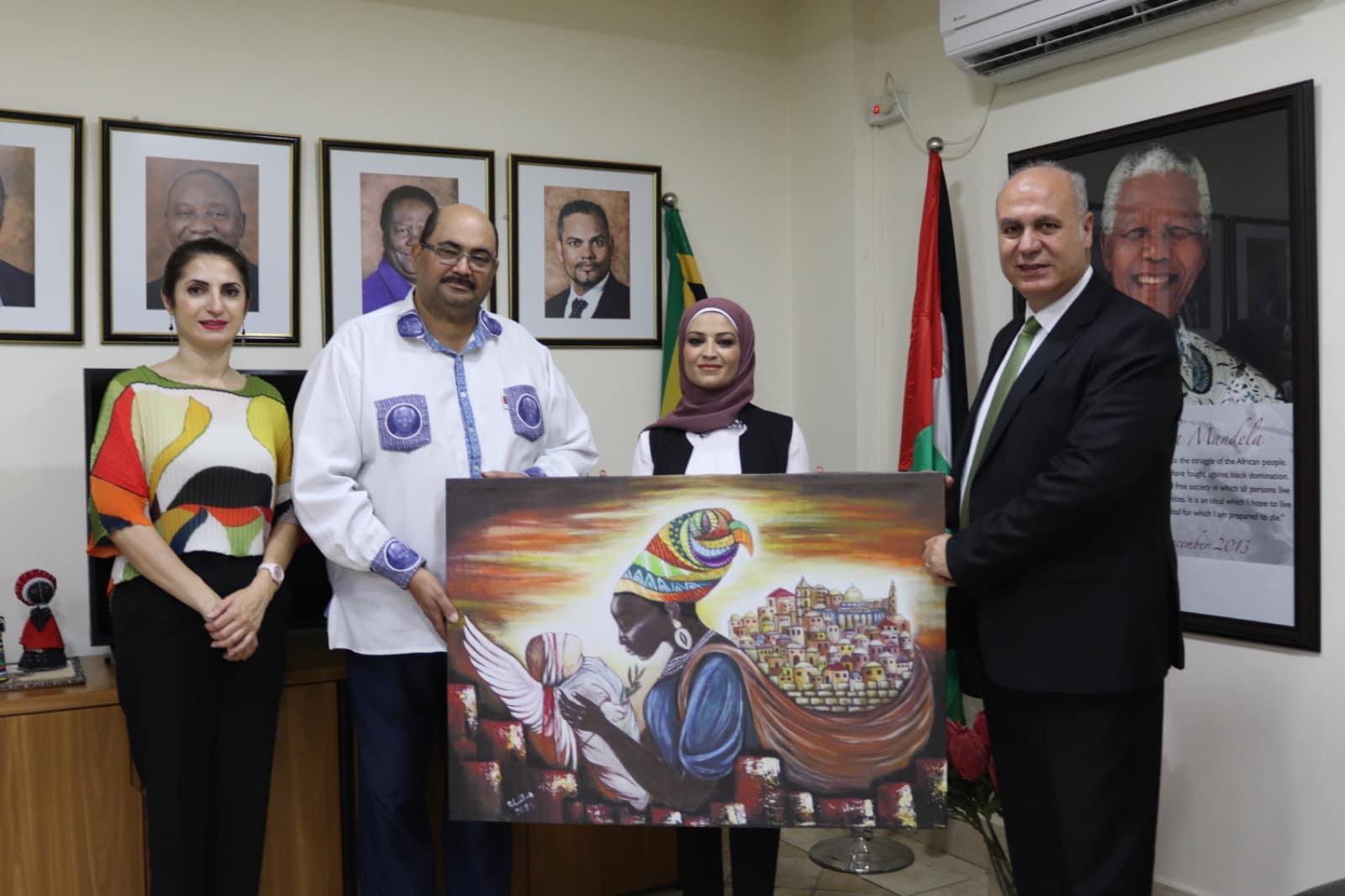 وزير الثقافة يثمن دور جنوب إفريقيا في مساندتها للقضية الفلسطينية ويُهدي سفارتها عملاً فنياً